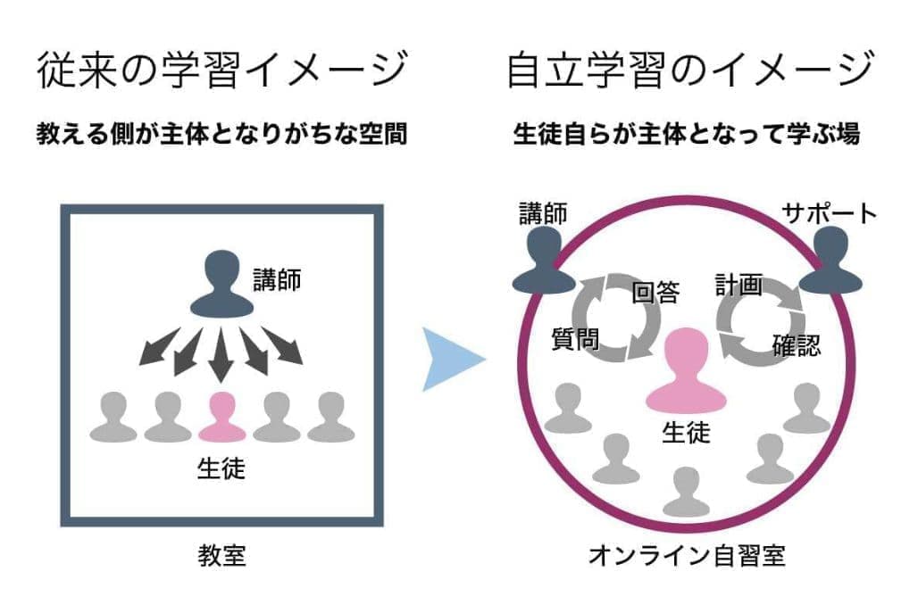 自立学習とは、「生徒が自ら課題を見つけ、その解決に取り組む姿勢」と私たちは考えます。さらに自立とは「自律」、自らを律していくこと、とも考えます。