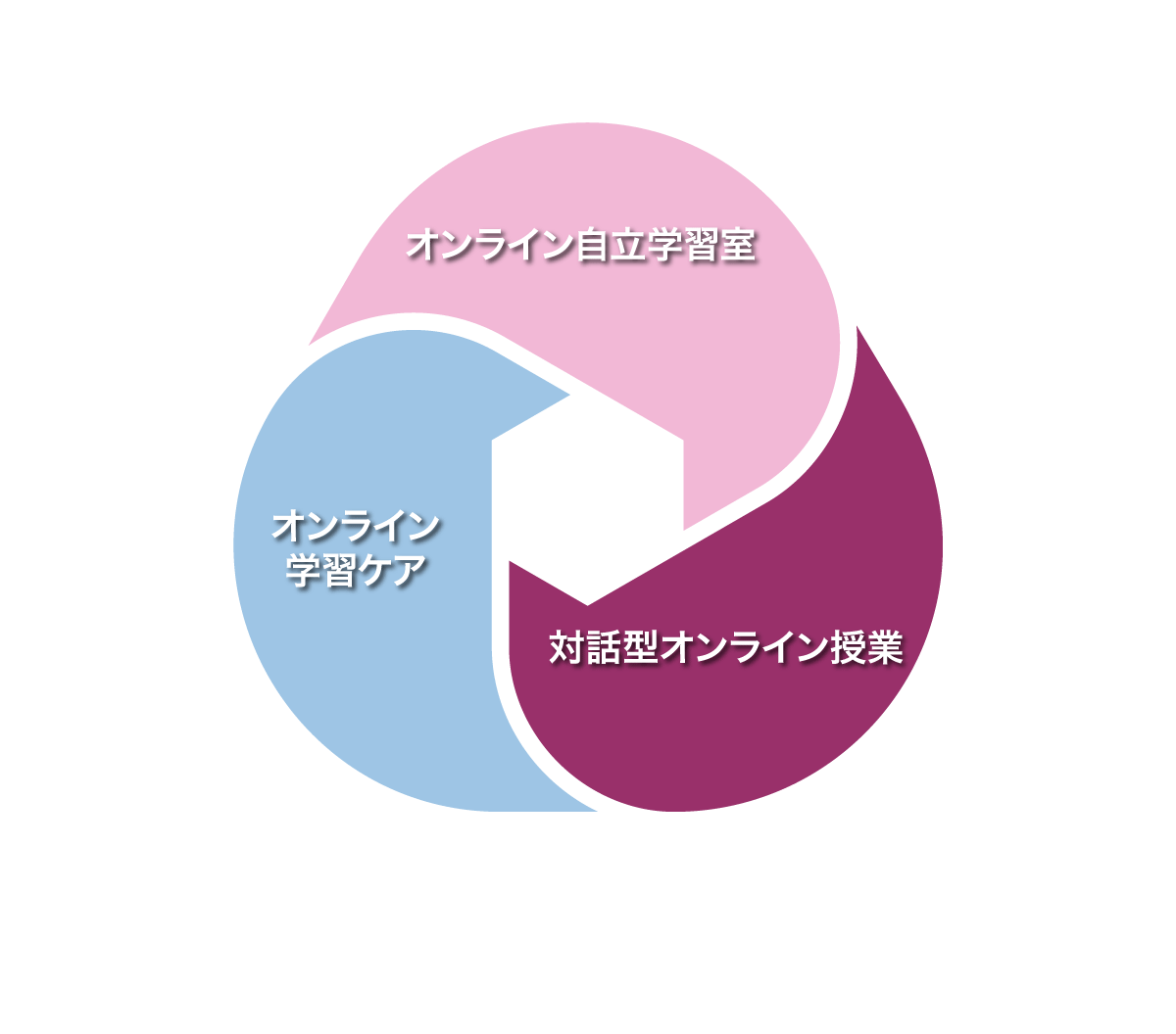 修明塾ウィンクーラでは、「オンライン自立学習室」「オンライン学習ケア」「対話型オンライン授業」という3つのスタイルを組み合わせて、オンラインだからこそ実現する、高い学習効果を実現します。