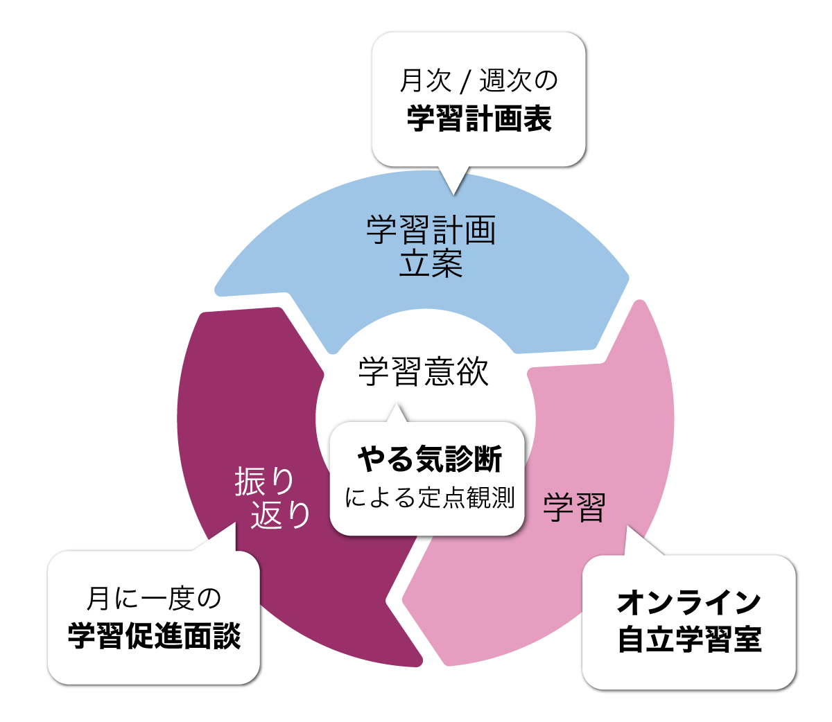 学習意欲を中心に据えた自立学習サイクルが回るよう生徒をサポート
