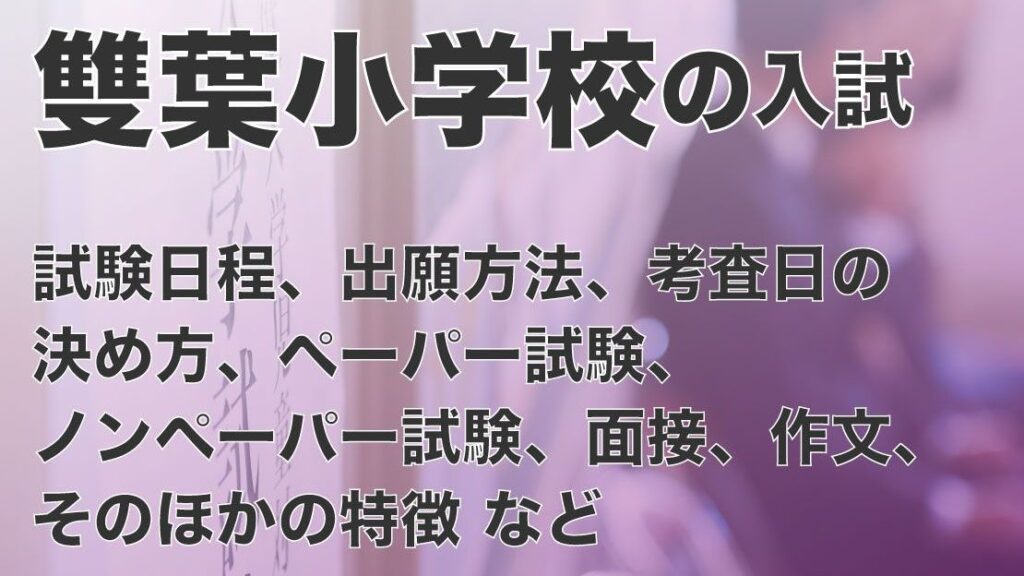 雙葉小学校の入試の試験日程、出願方法、考査日の決め方、ペーパー試験、ノンペーパー試験、面接、作文、そのほかの特徴