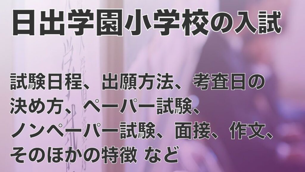 日出学園小学校の入試の試験日程、出願方法、考査日の決め方、ペーパー試験、ノンペーパー試験、面接、作文、そのほかの特徴