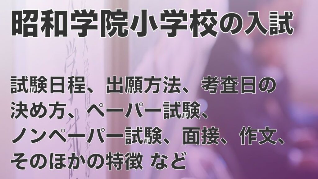 昭和学院小学校の入試の試験日程、出願方法、考査日の決め方、ペーパー試験、ノンペーパー試験、面接、作文、そのほかの特徴