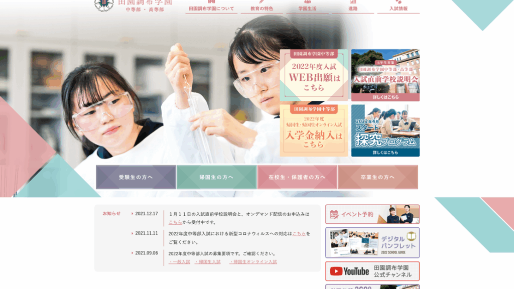 田園調布学園中等部の学校説明会・イベント情報のご案内です。 入試直前説明会 1月11日 18:30~0:00 <田園調布学園中等部 (でんえんちょうふがくえんちゅうとうぶ )>