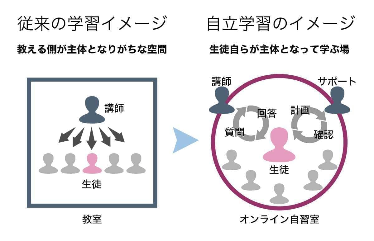 自立学習とは、「生徒が自ら課題を見つけ、その解決に取り組む姿勢」と私たちは考えます。さらに自立とは「自律」、自らを律していくこと、とも考えます。