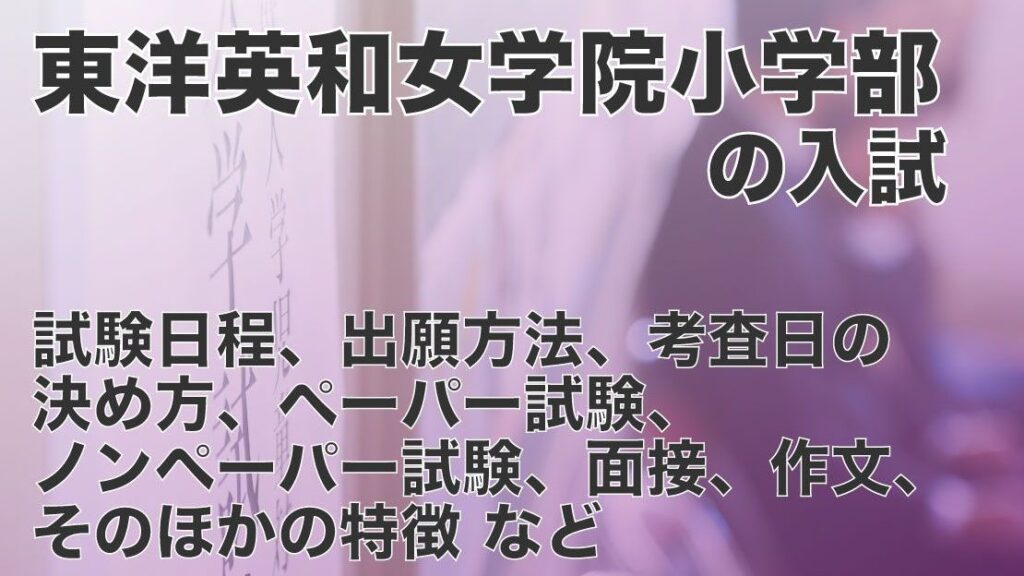 東洋英和女学院小学部の入試の試験日程、出願方法、考査日の決め方、ペーパー試験、ノンペーパー試験、面接、作文、そのほかの特徴