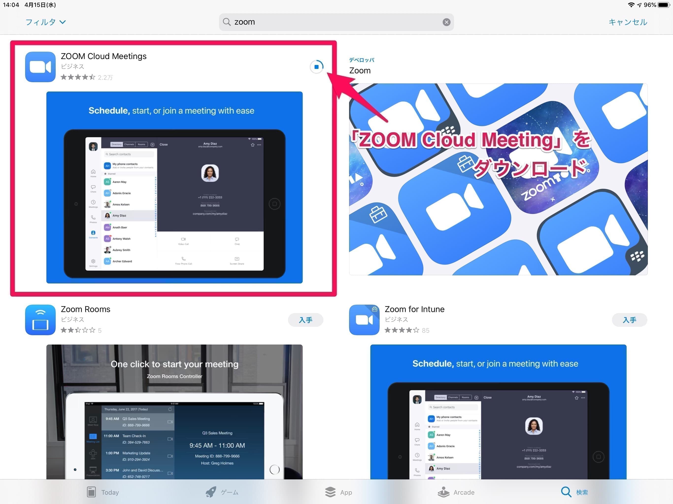 4. 「ZOOM Cloud Meetings」をダウンロードします。