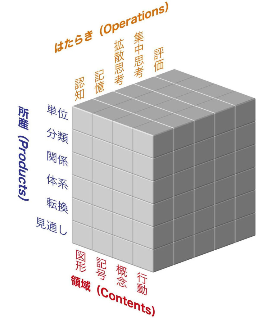 この知能の三つの面というのは、領域(Contents)と所産(Products)とはたらき(Operations)です。